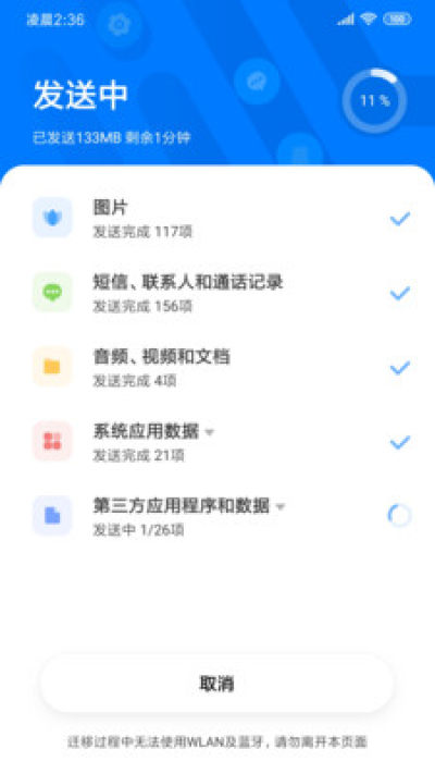 【传输内容超级多】包括图片、联系人、短信、通话记录、音视频、文档、19个系统应用的设置项、三方应用及三方应用数据(具体可迁移内容需看设备的支持情况)