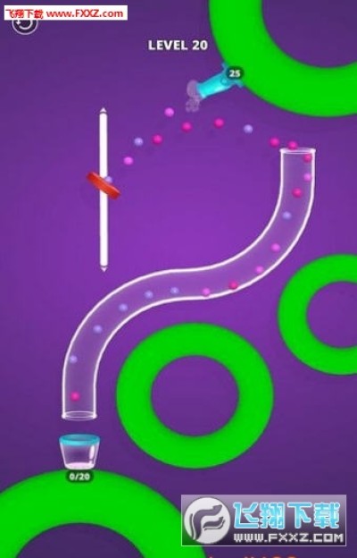 你需要调整好你的射击方向以此来保证这些弹球能够更为转却的进入到容器当中,每一次的射击都需要有着20颗球完全的进入到容器当中才能够算你成功!将所有桶装满球以过关。