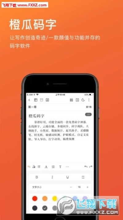 橙瓜码字是一款专为写作用户提供便捷高效、全平台覆盖、多端云同步、在线存储的智能化写作平台。工欲善其事必先利其器,橙瓜码字能为作家提供完善的文稿保存、同步方案,无论是点滴灵感、精彩内容或是小说大纲,都能随时随地进行创作,多端云同步安全不丢稿,同时支持时光机、实时预览、小黑屋强制锁定、随机起名、灵感随笔、敏感词检测、多维度数据统计、无缝对接Word和wps导入导出、离线编辑,在线拼字等功能,是小说作家、网络写手、媒介编辑等创作者必备的写作神器