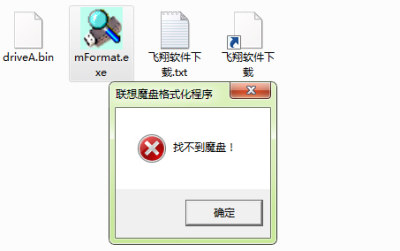 启动程序后,如果没有Lenovo MagicDisk联想魔盘插入,会提示找不到魔盘。