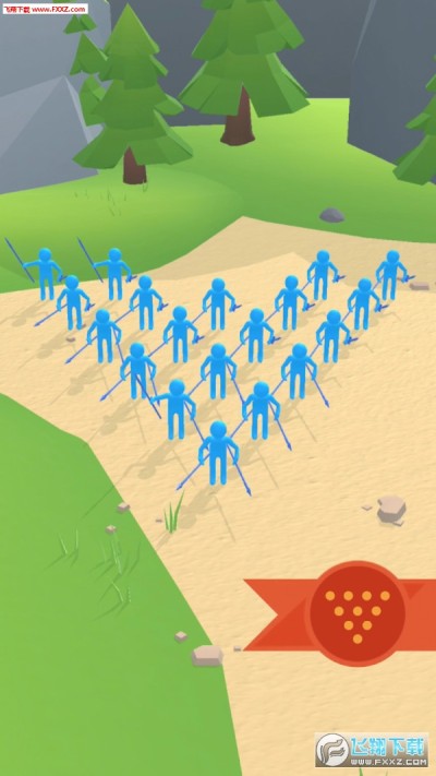 3、百人火柴人同场对局,防御、攻击、投射等丰富多样的兵种,利用地势进行阵容搭配和布局,升级士兵和武器改变你的队形来攻占更多的城堡