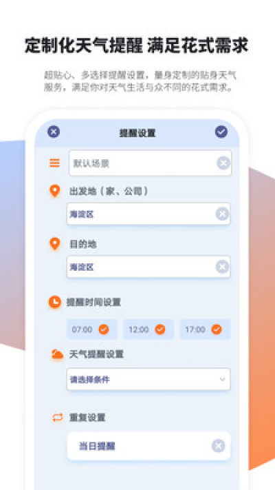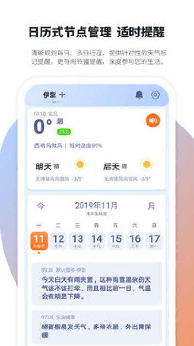 清晰规划每日、多日行程,提供更具针对性的天气标记提醒,更有闹铃强提醒,深度参与用户生活。