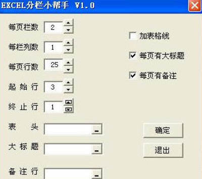 EXCEL中没有分栏功能,有的表格列数很少,而行数很多,打印起来不仅浪费纸张,而且不美观。如果能分成几栏打印,即漂亮又省纸。EXCEL分栏小帮手就是来解决这个问题的。它是EXCEL中的一个加载宏,用VBA语言编写。