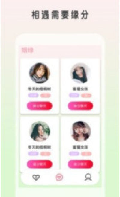1、各种风格和性格的眼缘小姐姐、小哥哥都会遇到,让你即兴的缘分社交,让你敢于开约的真诚婚恋空间。