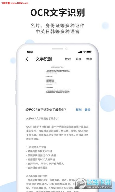 * 扫描各种文件、图片、书籍等提取想要的文字;