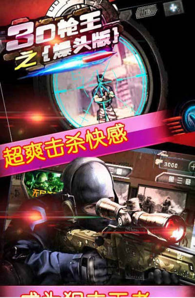 3D枪王之爆头版是一款劲爆的射击游戏,丰富的游戏内容,重力感应操作瞄准敌人,点击屏幕即可控制人物的行动,瞄准敌人开枪,精美刺激的游戏画面,丰富精彩的游戏剧情,你一定会喜欢上的!赶紧来体验一下吧!