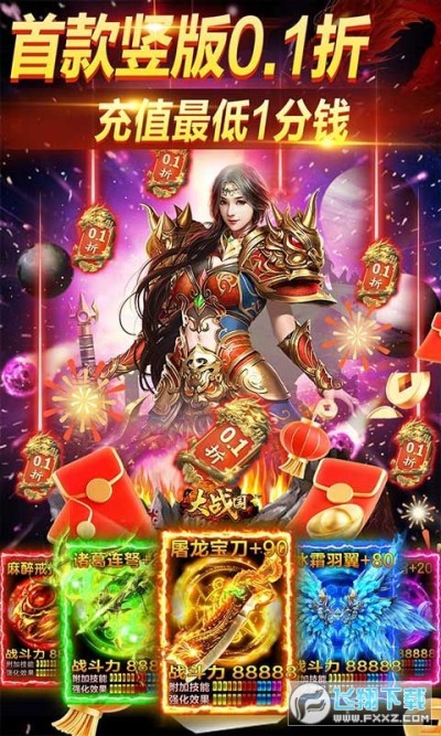 《大战国0.1折福利免充值》是经典竖版单职业真0.1传奇,强势王者归来!精美的游戏画面,丰富多彩的游戏系统,给玩家畅爽的传奇游戏体验!-红颜知己伴传奇战神--随我仗剑天涯战群雄-一款独特创新的单职业传奇游戏,高清炫丽的游戏画面给玩家带来无与伦比的游戏体验,夸张酷炫的技能表现给玩家带来耳目一新的感觉,游戏内有海量boss随便刷,光柱道具满地爆,还有真实沙巴克攻城战、剧情式打宝地图,创新的攻城掠地玩法等多种玩法系统等待玩家体验。每天上线送海量道具,海量元宝来玩就有,更有各种神秘高性价比道具等待玩家发现扫货,不肝不氪,轻松挂机即可战力飙升。