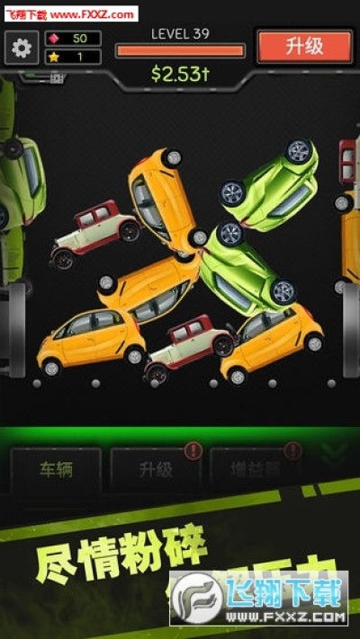 3、看着各种豪车在你的破碎,非常的带感,解锁升级更多汽车,不断的赚钱。
