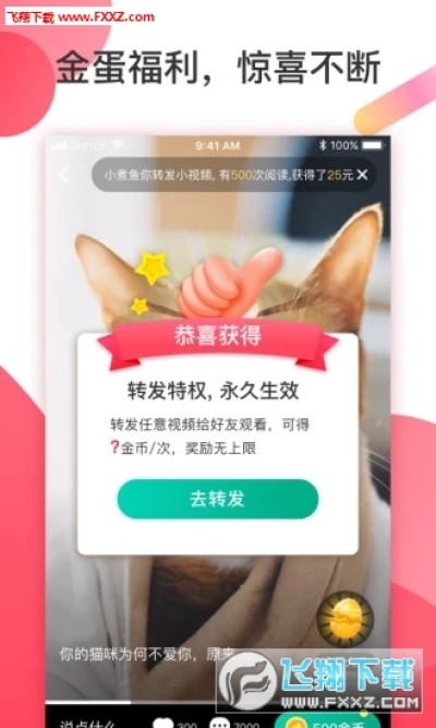 2.每看一条视频都会有金币奖励,金币能兑换现金提现到微信。