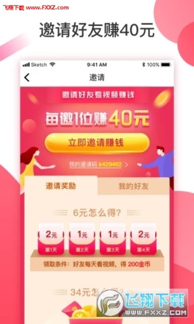 用户还可以邀请好友一起看视频,每邀请一个好友得8元现金,可提现到微信。