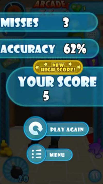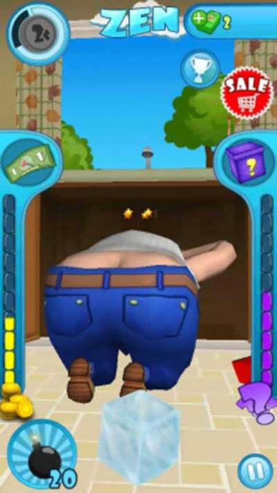 当玩家“连击”时,界面右上角的“硬币等级”会提升,这样可以获得翻倍的金币。所以要避免失误,尽量多的连续扔进去。如果不慎操作失误,可以用左下角的炸弹挽救,但是一定要赶在冰块落到地板之前把它炸掉。