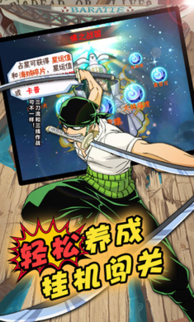 游戏以回合制战斗玩法为核心,玩家通过收集和养成原著动画中形形色 色的角色来组成属于自己的海盗团,通过冒险、闯关等玩法强化自己的伙伴,在PVP对决中占据一席之地,脱颖而出成为最强海盗王。玩家在游戏过程中,不仅是作为主角组建海盗团从而踏上强者之路,也是对《ONE PIECE》动画的经典重温。