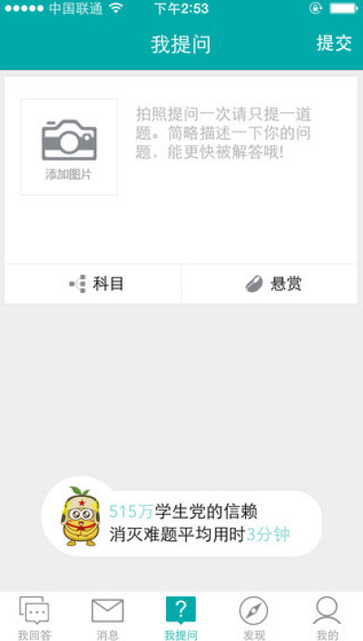 2.我要回答:选择学科,拍下答案,或者文字输入,点击提交,即完成回答。