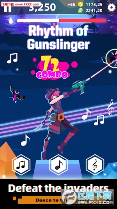 神枪的节奏安卓中文版是一款卡通风格的休闲射击手游游戏里玩家需要使用武器消灭怪物,根据音乐节奏灵活的消灭所有的怪物敌人,感受快节奏的刺激玩法和炫酷的视觉效果,喜欢的小伙伴可以下载试试!
