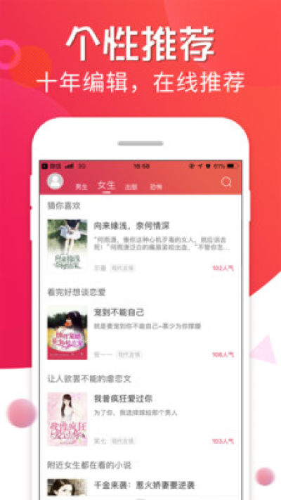 追书宝是一款专为书虫打造,免费阅读海量正版小说的阅读器!十年网文编辑每日精心推荐,内容涵盖男频、女频、出版物、恐怖四大板块,让书虫们追书追不停,一次看过瘾,从此告别书荒!免费看小说,认准追书宝!