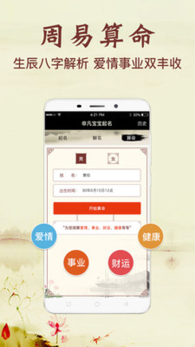2、专业生辰八字、三才五格、生肖喜忌、字形意义分析,轻松解析好名字!