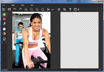 第一步:启动软件,打开需要处理的图片!然后点击左边的绿色+号按钮,将你所需要保留的内容涂抹上绿色!这个也就是选择前景的部分!