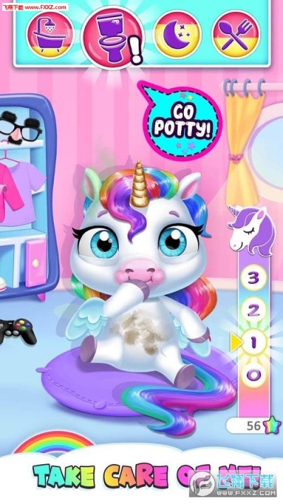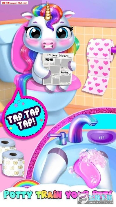 你的宝宝独角兽想要超级干净!给小家伙洗澡,观看神奇的小马对彩虹肥皂或粘液浴的有趣反应!是时候训练你的小麒麟宠物!别忘了洗手!