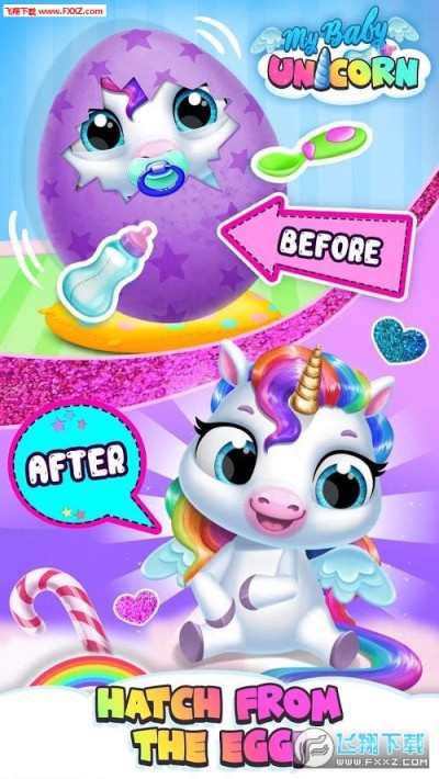 你得到了一个礼物 - 一个超级可爱的虚拟独角兽宝贝!成为最好的马和小马保姆与乐趣我的婴儿独角兽宠物护理游戏为孩子和幼儿,女孩和男孩!孵化一个彩蛋,照顾最可爱的新生独角兽彩虹头发!与您的小虚拟宠物朋友一起洗澡,喂食,便盆火车,打扮,唱歌睡觉和玩有趣的游戏!用彩虹色装饰婴儿独角兽的房间!每天为孩子们玩My Baby Unicorn虚拟宠物护理游戏(现在里面有生日和圣诞用品!),看着你的虚拟宠物小马长大!
