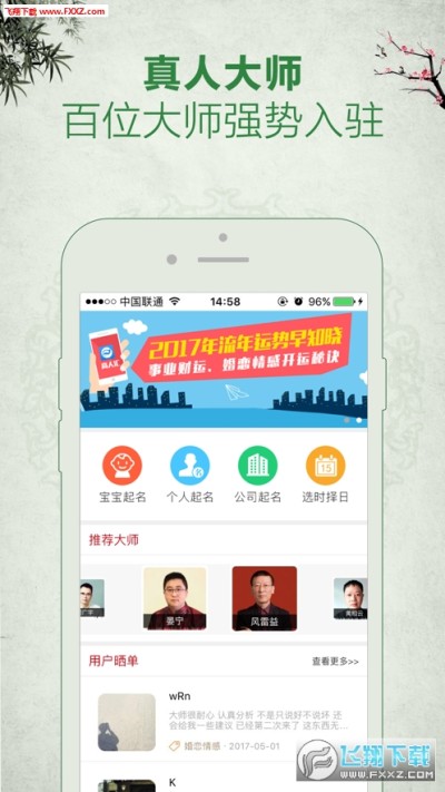 高人取名app是高人网推出的一款专业周易八卦大师测算取名的app,在高人取名app上有专业的大师在选测算,根据你的生辰八字、五行命格取名,还能为你提供运势测算等等一系列的服务哦!