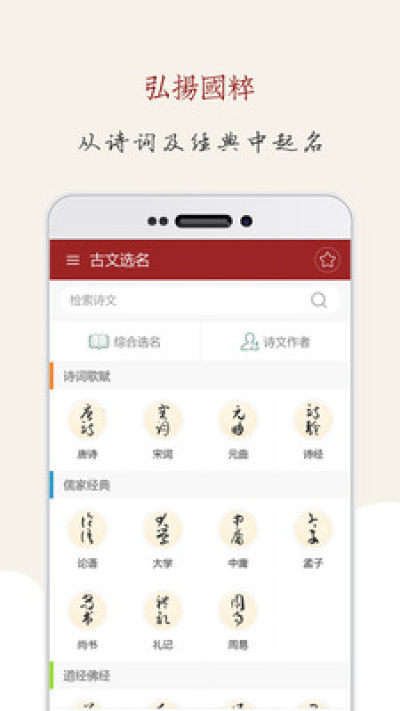 2.能从海量的诗词中取名字,上面收录了丰富的经典诗词,弘扬中华国粹;
