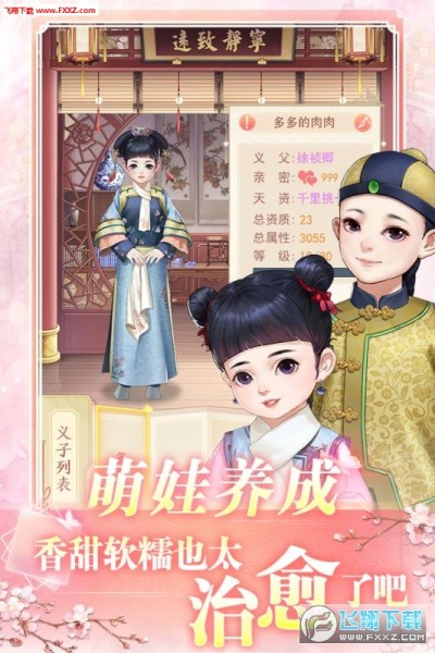 小主在与知己密会或者暧昧时,有概率路拾遗孤,收义子女。小主将化身老母亲,体验养儿育女的艰辛与乐趣,子女可通过教导成年,成年后将会通过科举考取功名,之后就可以与其他小主的孩子结亲!当然结亲也是讲究门当户对的,只可与相同功名的孩子结亲哦。孩子的天资由知己的亲密度决定,亲密度越高,天资越高,成年后的属性越高,科举考取的功名自然也越高。天下父母都是望子成龙、望女成凤,想要自己的孩子不落于人后,小主要加油提升知己的亲密度哦~
