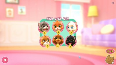 首先,挑选一只你最喜欢的猫咪,你可以喂它喝水或者吃猫粮,也可以在多种多样的装扮服饰中选一套你最喜欢的给它穿上,还可以陪它一起看电视、抓老鼠、咬鞋子或者玩玩具。