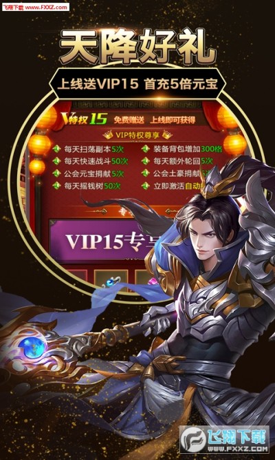2.上线送v15,30000元宝,1000万游戏币,永久特殊称号!