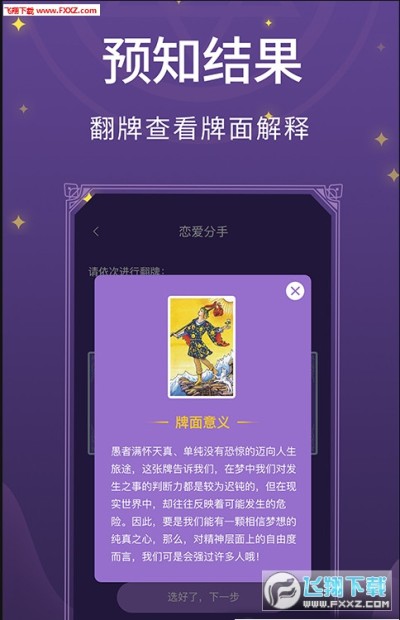 塔罗小子app是款非常有趣的占卜软件,想了解自己的恋爱、事业等运势吗,每天都想知道当天的运势如何,直接来这里,随时帮你占卜测算,每日塔罗牌算好运,更有神秘洗牌方式,测的更精准哦,每个牌面释义也能实时查看,不要错过啦。