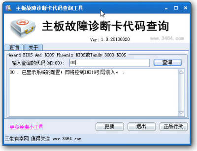 主板故障诊断卡代码查询工具配合主板故障诊断卡可以快速查询电脑故障所在.(诊断卡的工作原理是利用主板中BIOS内部自检程序的检测结果,通过代码一一显示出来。