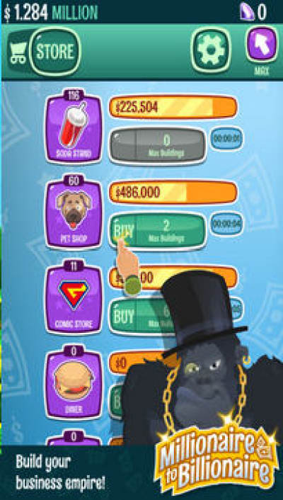 百万富翁大亨手游是一款模拟经营类游戏,游戏拥有卡通的画风,游戏玩家需要不断的赚钱解锁更多的游戏内容!感兴趣的玩家快来下载吧!