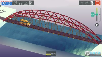 这款游戏提供了让您自由的发挥创作和设计桥梁的结构,主要目的就是让卡车通过桥梁,后期更要使轮船、热气球、飞机等通过。