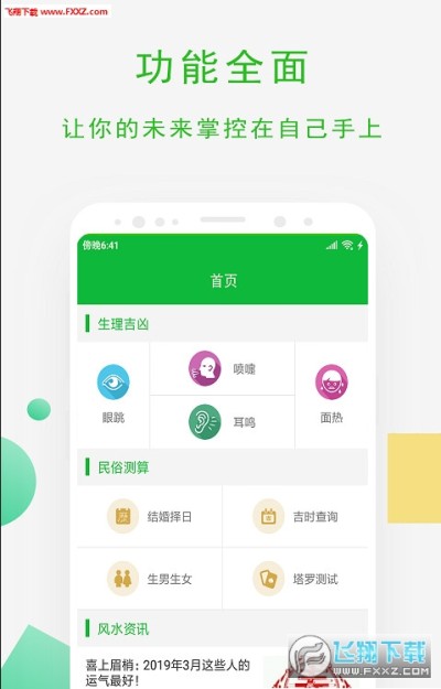 天天测算app是一款可以进行凶吉测算的app,很多人住房,摆东西喜欢讲究风水,这款app就是为大家提供这个服务,你可以在上面了解不同户型,卧室摆放,书房摆放等对风水的影响,还可以在这里查找吉日,更有超多风水资讯供大家学习!