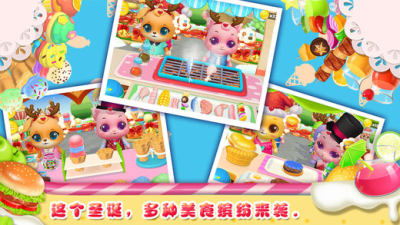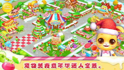 宠物美食嘉年华:圣诞快乐是一款Q萌逗趣的餐厅模拟手游。点击开始进入游戏,整个美食城全景跃入眼,滑动屏幕选择中意的美食店点击进入。客人们都排着队,赶快看看他们头上的泡泡,根据他们的喜好,为他们制作美食。