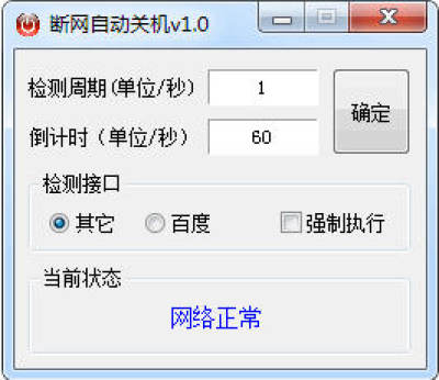 3、软件工作中若网络断开,在设定的时间到达后正常关机。