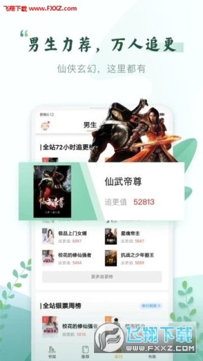 3、 网络原创、现代都市,东方玄幻,武侠仙侠游戏竞技,现代言情、古代言情、悬疑灵异、历史军事、权威小说榜单,感受不花钱看好书的快感。
