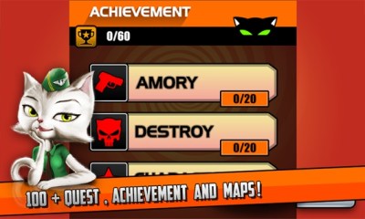 《超级猫特工》是一款以萌猫为主角的射击游戏。玩家需要扮演一名犀利的猫特工去击败街道上的恐怖组织。它们都携带有武器,是一个极端危险的组织。你一个人深入敌后去消灭这些作乱的敌人。你的信仰只有一个:击败它们,在所不辞!