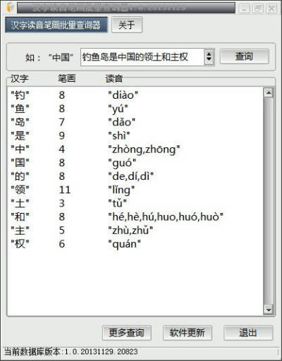 1.采用文本检索技术2.内置20000多条信息3.支持快速批量查询汉字读音笔画。