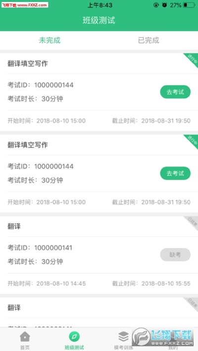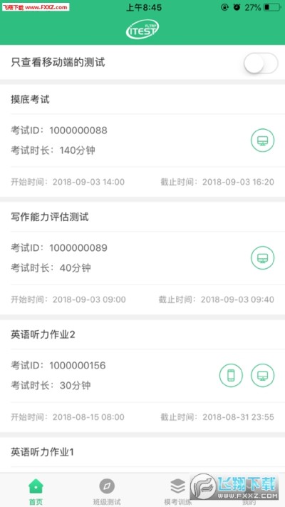 还可以快速筛选移动端支持的班级测试,直接进入考试。