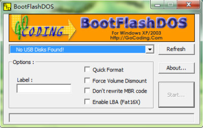 BootFlashDos是一款非常好用的小工具,它可以将你的U盘格式化并制作成DOS启动盘,它可以从diskcopy.dll拷贝(command.com,io.sys,msdos.sys)所需要的DOS文件。要求系统是windowsXP/2003.