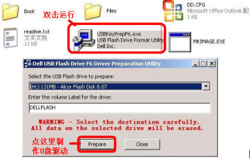 4、确认无程序访问U盘,双击USBKeyPrepF6.exe,选择你的U盘后点击Prepare。