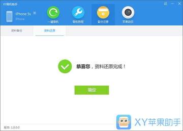 4.资料还原完成页面,点击“确定”即结束资料还原;