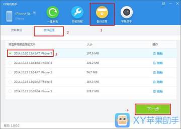 1.刷机后进入资料还原页面,选择还原文件后点击“下一步”即进入资料还原流程;