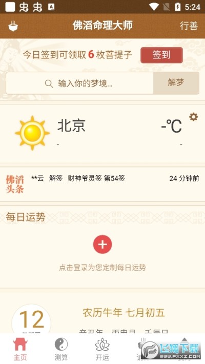 佛滔命理大师2020最新版是款相当不错的手机运势测算软件,通过我们的急速下载使用各位兄弟们就能在日常生活中体验到极致的命理推算。超多的星座信息等待用户们前去解析和体验,想要试试的朋友速速下载吧