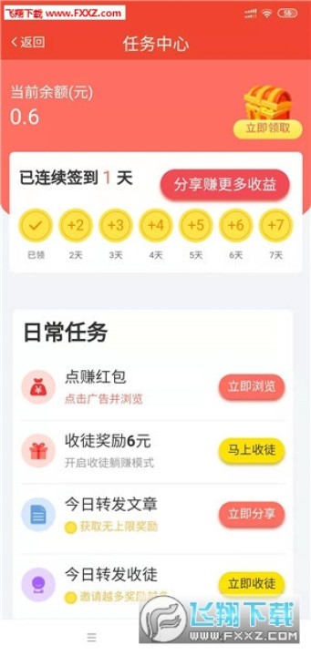1、下载登陆完成新手任务可获得0.6元,转发单价0.16元