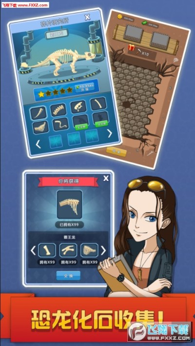 3、在开采矿物的同时,有几率会挖到恐龙化石部件,收集齐一整套之后可以解锁恐龙化石图鉴,每收集一套套还会有相应的金币奖励哦。