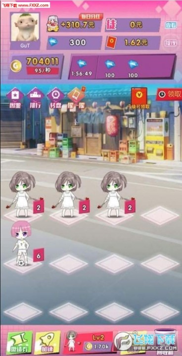 3.在界面上一个个格子都而已通过商店购买少女来填充,让两个一样等级的少女合成就可以晋升为更高等级的少女哦;
