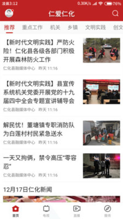 “仁爱仁化”是仁化县融媒体中心推出一款仁化当地的新闻客户端 ,主要报道仁化县委县政府中心工作,关注民生、社会热点问题,发挥舆论监督,维护社会稳定的主流媒体作用。它是一款集新闻资讯、手机电视、智慧城市、民生服务等于一体的新媒体平台, 结合当地特色,重视民生服务,成为仁化有影响力、百姓喜闻乐见的掌上平台。不仅为用户带来新鲜的本地资讯,还有全市以及全省、全国的新闻事件,更提供本地爆料以及生活服务。“仁爱仁化”——更懂你的本地应用客户端。