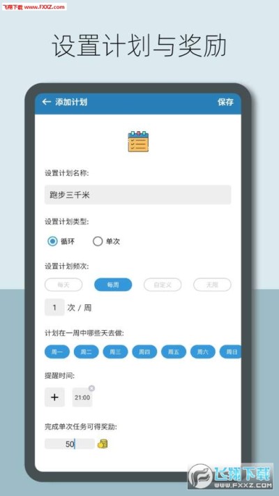 帮助你具体计划到每一个细节,单次or循环,完成计划的周期(日、周、月),督促提醒时间,让你的计划具体可操作。