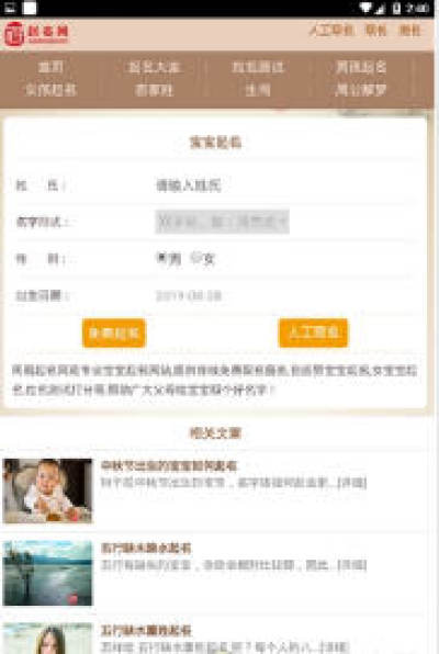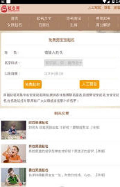 3.起名同样是根据传统姓名学知识,通过层层信息的筛选,用自选名字,推荐名字,天降吉名,三种符合用户操作的方式。总有一个好名让您一生顺利!